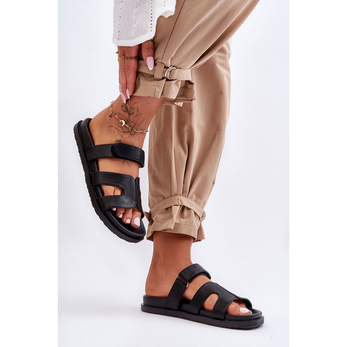 Inna marka Claquettes Femme Classiques En Cuir Avec fermeture scratch Noir Amedon le noir