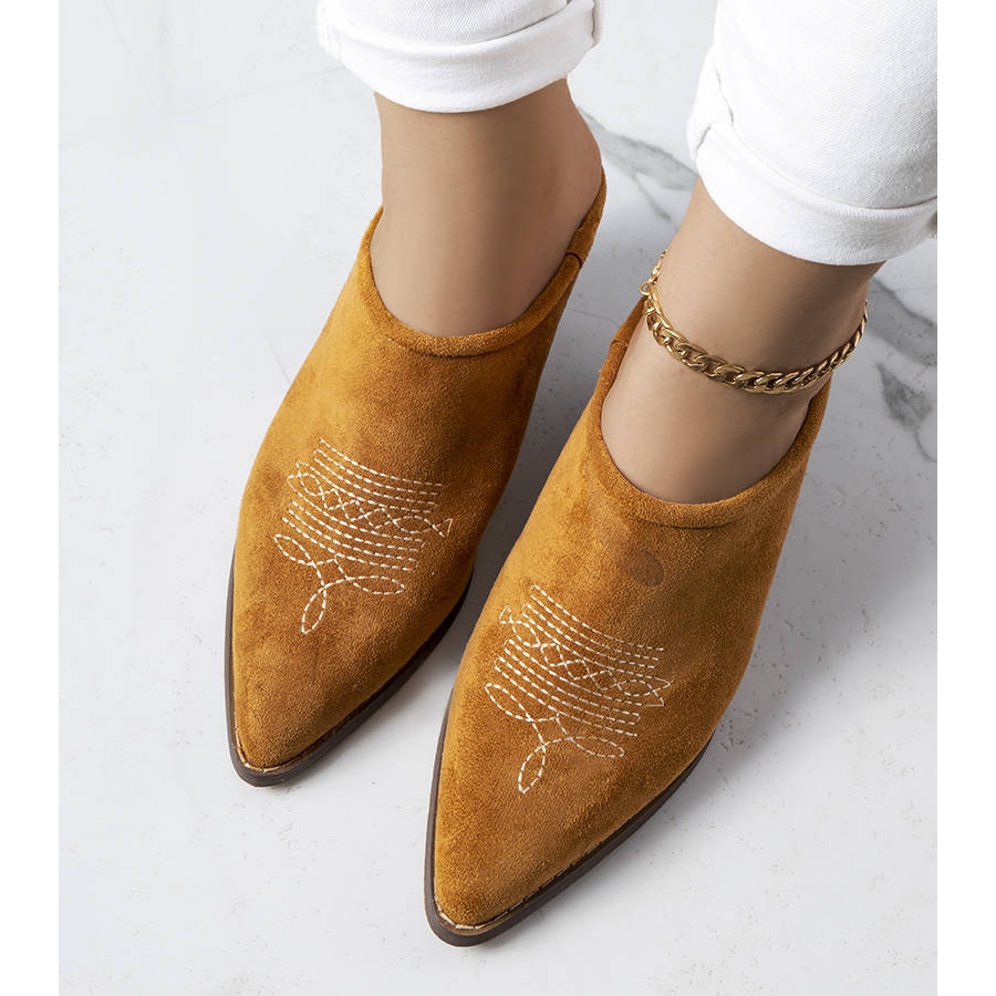Découvrez les tongs fermées Linda marron de PA1, qui allient élégance et confort. Ce modèle unique attire l'attention par son style cowboy, qui ajoutera certainement du piquant à tout style estival. Le cuir écologique en daim de haute qualité se distingue non seulement par son esthétique, mais aussi par sa durabilité, qui garantit une utilisation à long terme.