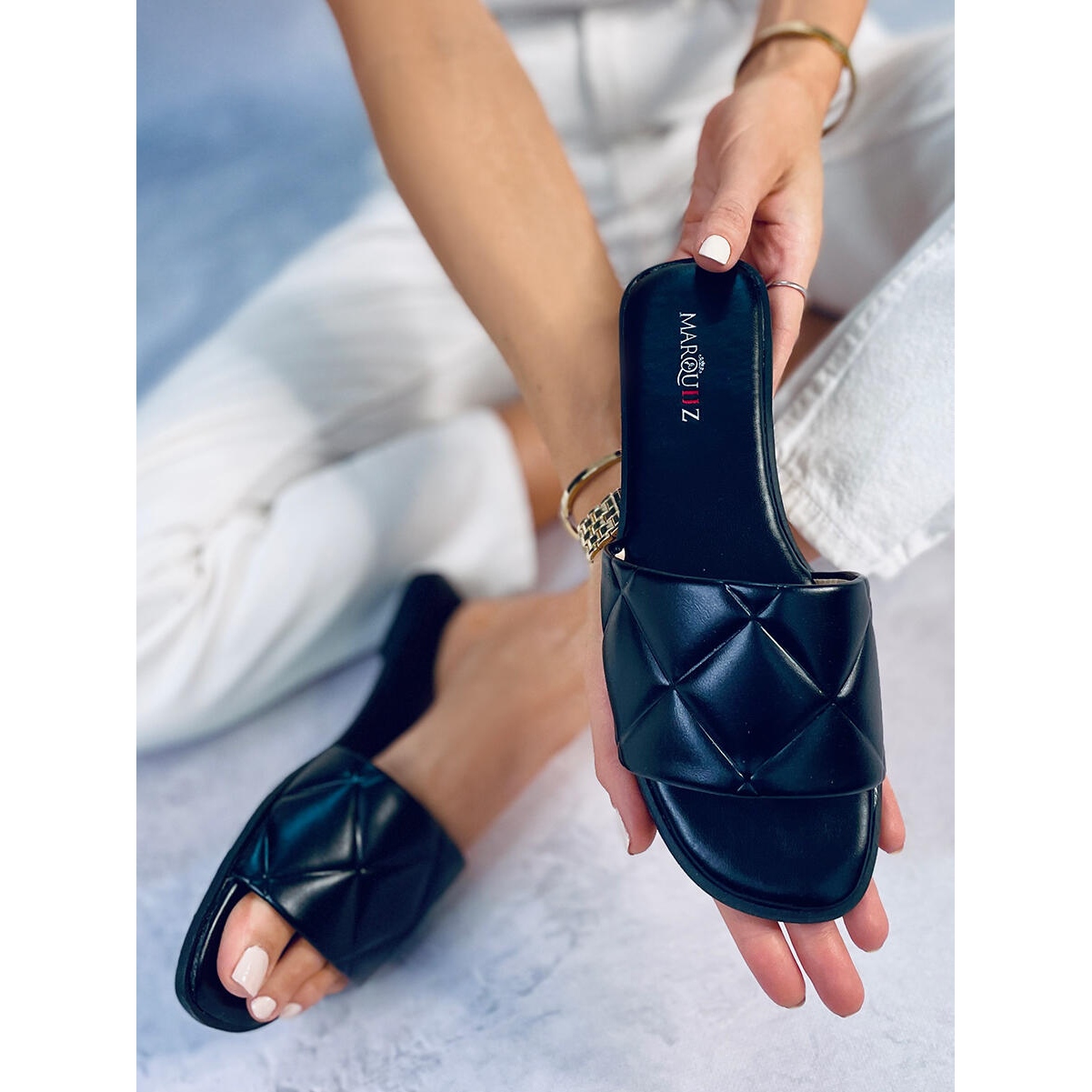 Les tongs matelassées Cray Black sont le choix parfait pour les femmes qui apprécient un look tendance et un confort au quotidien. Fabriquées en cuir écologique de haute qualité, ces tongs noires séduisent par leur impressionnant matelassage, qui ajoute de l'élégance et un caractère moderne. Grâce à une semelle plate et un insert intérieur doux, les tongs Cray offrent un confort à chaque pas, ce qui est extrêmement important lors des promenades quotidiennes ou des voyages d'été.