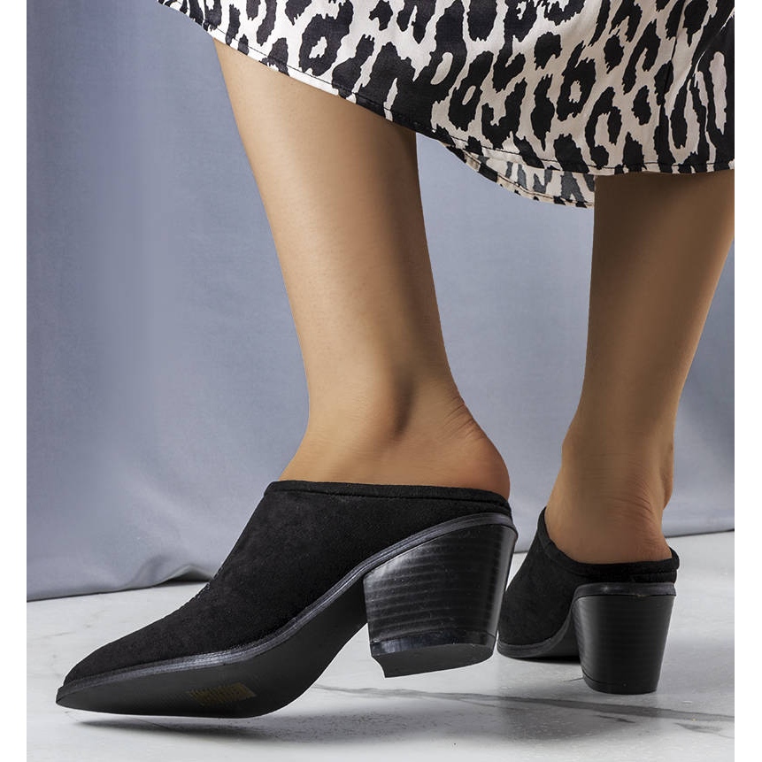 Détails: Claquettes noires à devant intégré de Linda