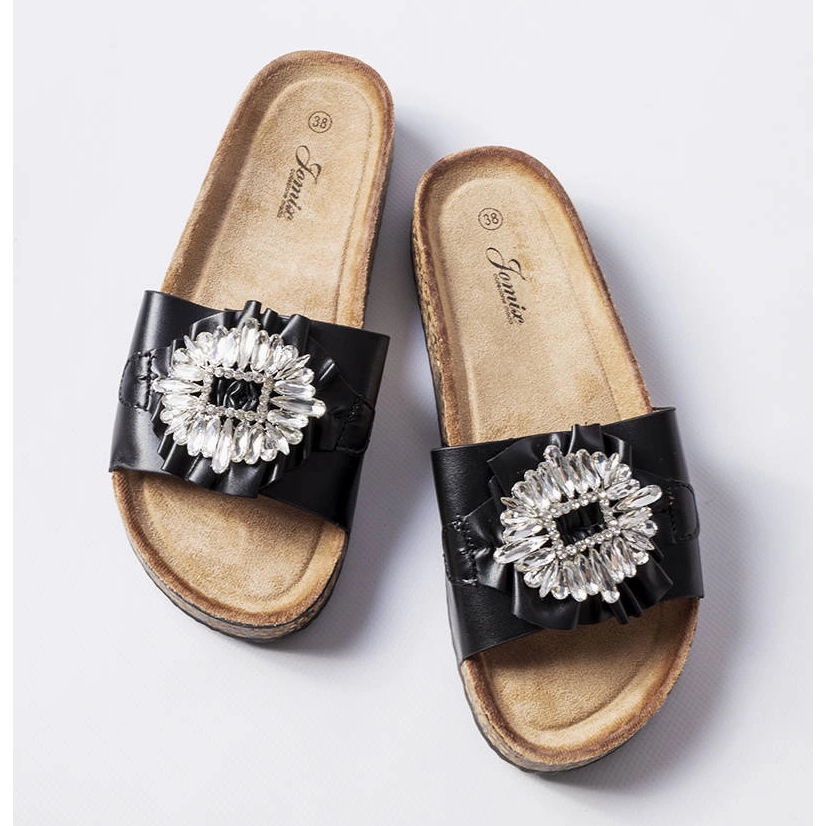 Confortables, à la mode et universelles - les tongs noires avec une semelle en liège sont le choix parfait pour toutes les femmes qui apprécient les solutions élégantes pour les chaussures de tous les jours.