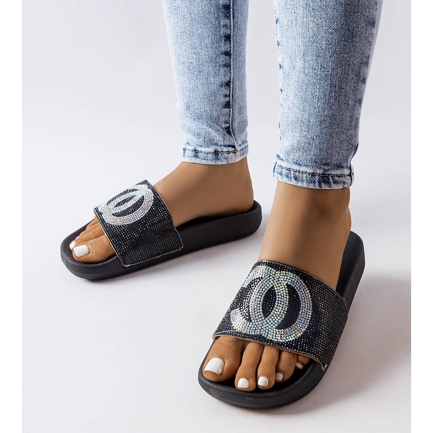 Détails: Claquettes noires ornées de strass de Glendale le noir