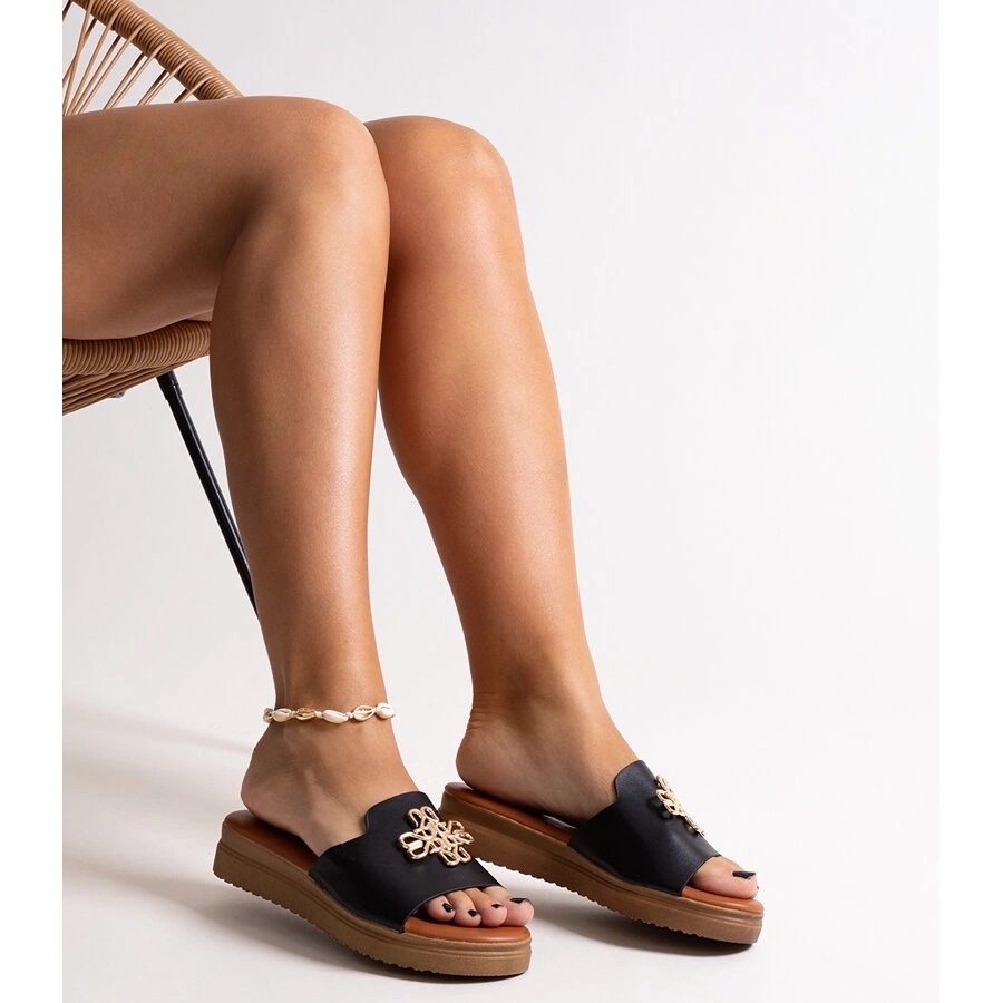 Découvrez les tongs noirs inhabituels avec la boucle nibale, qui sont la combinaison parfaite de style et de confort. Fabriqués en cuir écologique de haute qualité, ils s'intègrent parfaitement dans votre garde-robe d'été, offrant non seulement un look à la mode, mais aussi un confort à chaque étape.