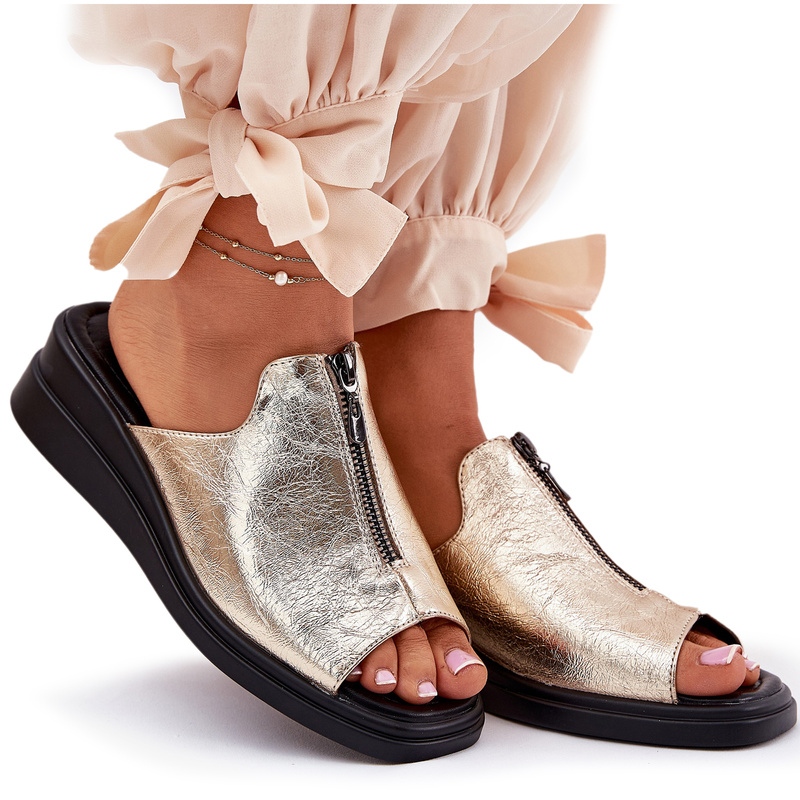 Découvrez un confort et un style inégalés avec nos tongs pour femmes dans une couleur dorée élégante. Fabriqués en cuir écologique de haute qualité, ces tongs sont le choix parfait pour les jours d'été, car ils combinent le design moderne avec la pratique.