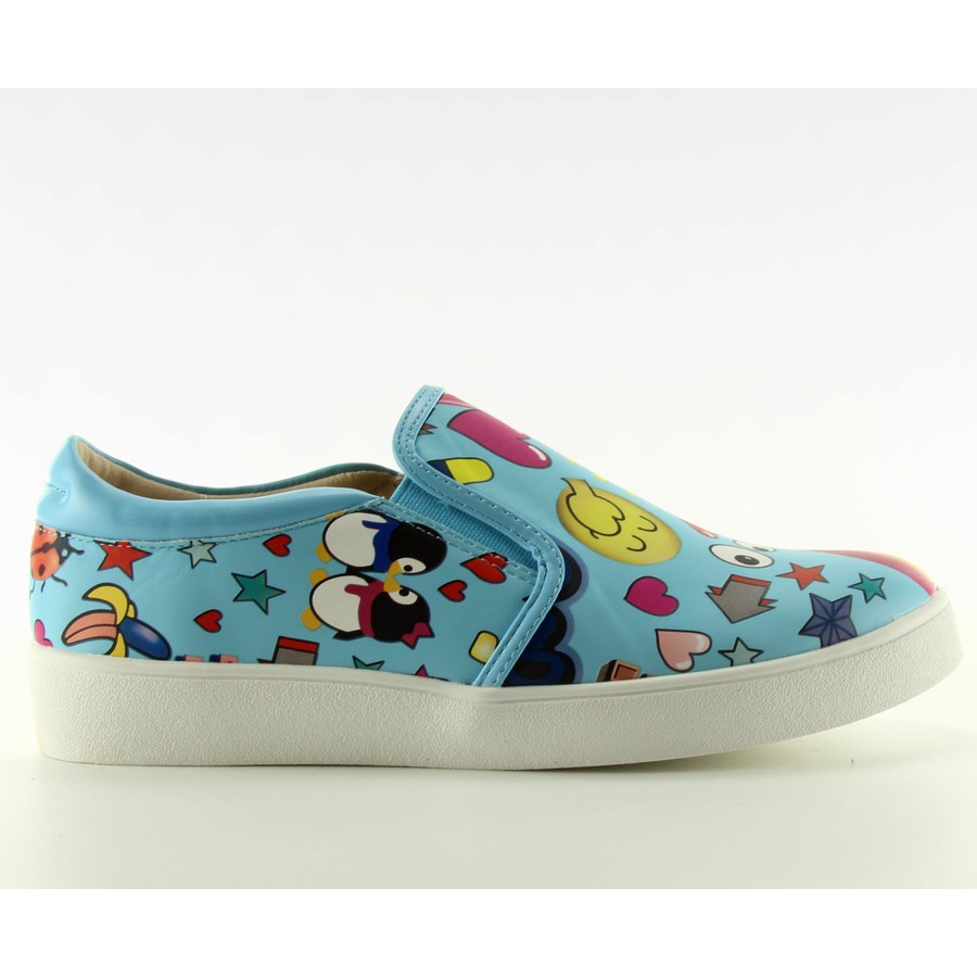 Comic Slipons 6120 Blue - baskets à enfiler élégantes dans une version bleu intense. Le motif énergique et coloré inspiré de la bande dessinée attire l'attention, et le cuir écologique au grain lisse leur donne un caractère moderne. Parfait pour un style décontracté et sportif - confortable, léger et très féminin.