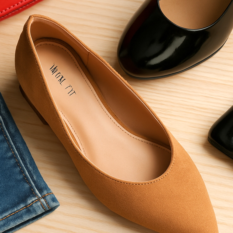 Pour les femmes aux pieds larges, les escarpins à talons bas ou moyens et à bout arrondi sont préférables. Les modèles à poteaux offrent une meilleure stabilité que les talons aiguilles. Évitez les escarpins vernis sans inserts en caoutchouc : le cuir naturel ou le daim sont un bien meilleur choix et s'useront légèrement avec le temps.