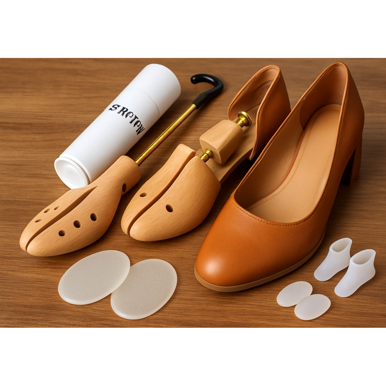 Les épandeurs de chaussures représentent un petit investissement qui prolonge considérablement la durée de vie des chaussures. Les modèles en bois ou en plastique sont placés dans des chaussures pendant la nuit, étirant progressivement le matériau. Des sprays spéciaux pour étirer la peau sont également disponibles pour faciliter ce processus.