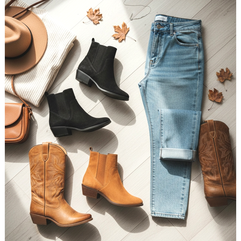 Les bottes cowboy, qui reviennent à la mode en 2026, s'associeront à merveille avec un jean mom. Remontez les jambes jusqu'à mi-mollet, exposant la partie supérieure des bottes de cowboy. Cette combinaison a un caractère rétro et est en même temps très actuelle sur le plan stylistique.