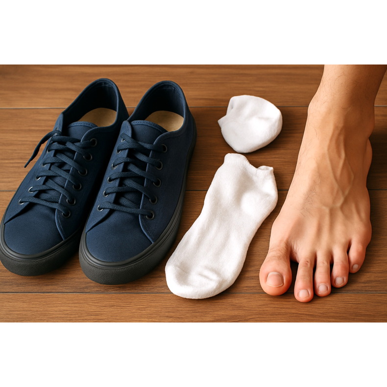 ✗ Porter des chaussures sans chaussettes — la sueur est absorbée directement dans le matériau