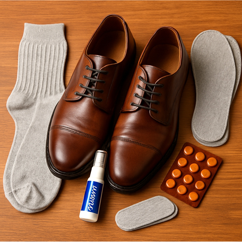 - Antisudorifiques pour les pieds (ex. Odaban, Perspirex)