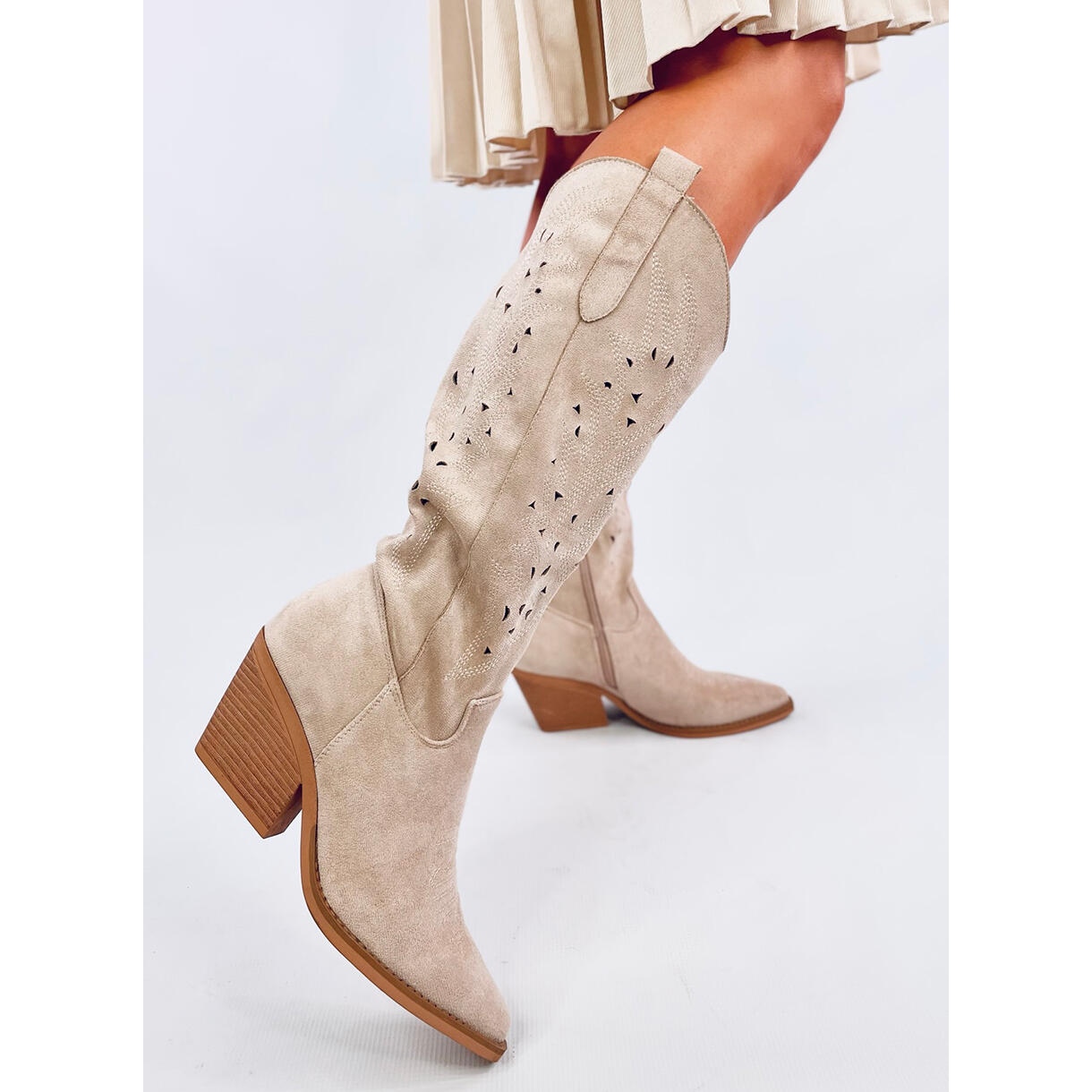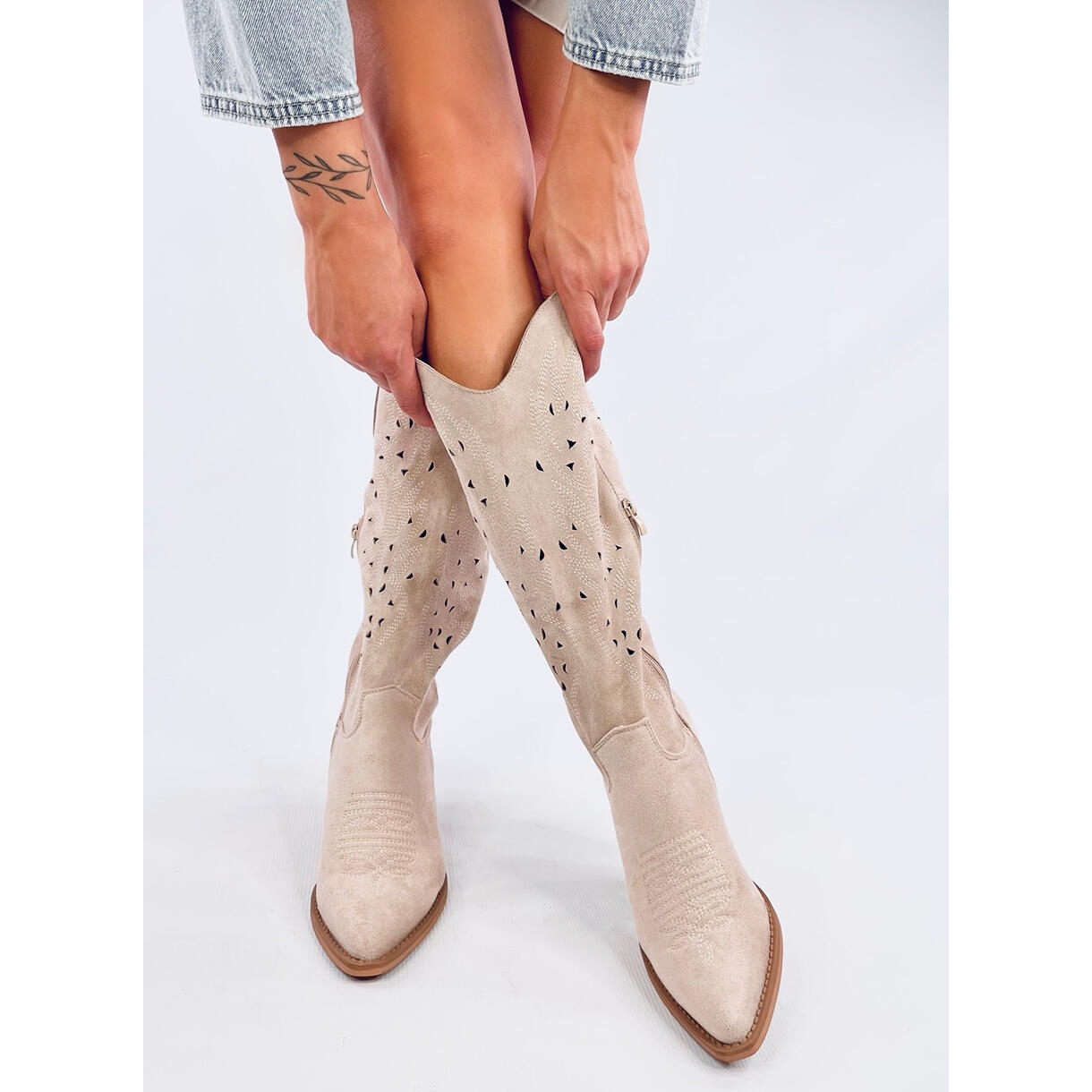 Les bottes cowboy ajourées beiges sont un choix parfait pour les femmes qui souhaitent allier confort et style tendance. Fabriquées en daim écologique, ces belles bottines se distinguent par un subtil motif ajouré qui leur confère légèreté et charme féminin. Des bouts galbés et effilés, décorés de broderies délicates, en font le complément parfait à n'importe quel style.