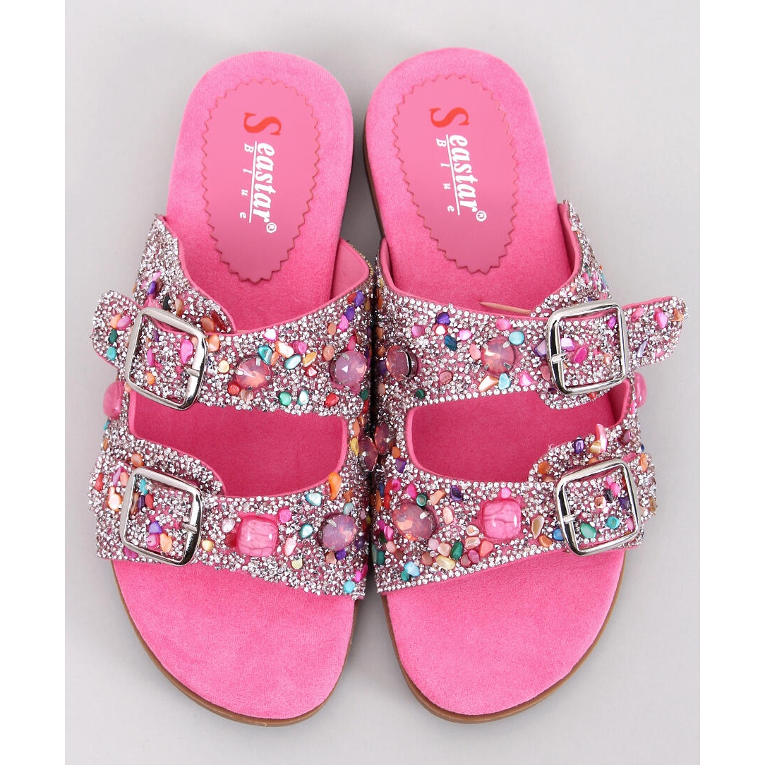 Les pantoufles avec des pierres Cultin Fuchsja sont une proposition idéale pour les femmes qui veulent combiner un look à la mode avec le confort chaque jour. Fabriqués en daim écologique, ces tongs roses attireront certainement l'attention grâce à la broderie efficace des pierres et zircons brillants, qui leur donnent un caractère et une élégance uniques.