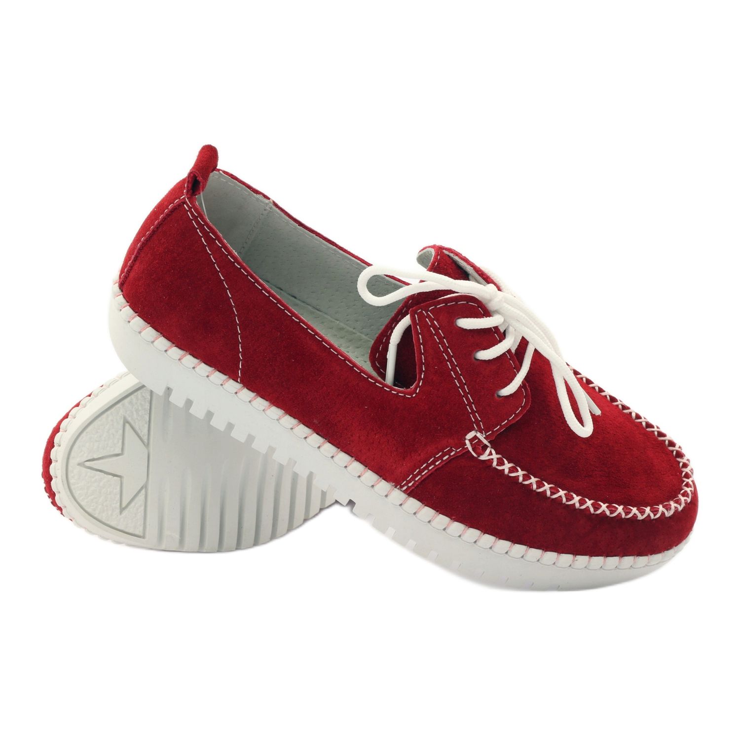 Fabriqués à partir de cuir suédé naturel de la plus haute qualité, ces mocassins attirent non seulement le regard, mais garantissent également durabilité et confort. La tige rouge avec des surpiqûres décoratives blanches leur donne du caractère, et la fermeture à lacets permet un ajustement parfait au pied, aussi bien pour les personnes à la silhouette plus fine que plus lourde.
