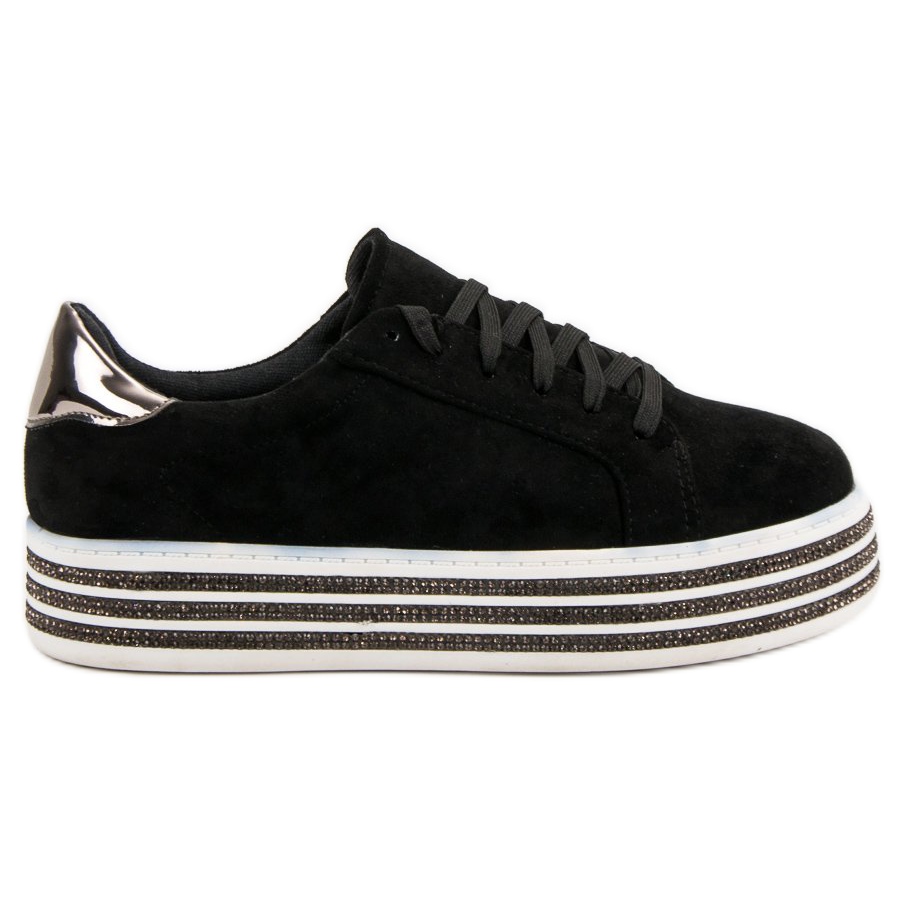 Nous vous présentons les Creepers en suède avec cristaux en noir profond, qui allient parfaitement style sportif et élégance. Ces chaussures uniques sont le choix parfait pour les femmes qui veulent être à la mode au quotidien sans sacrifier le confort. Grâce à leur construction légère et à une semelle épaisse de 4 cm de hauteur, vous pourrez profiter du confort lors de longues promenades.
