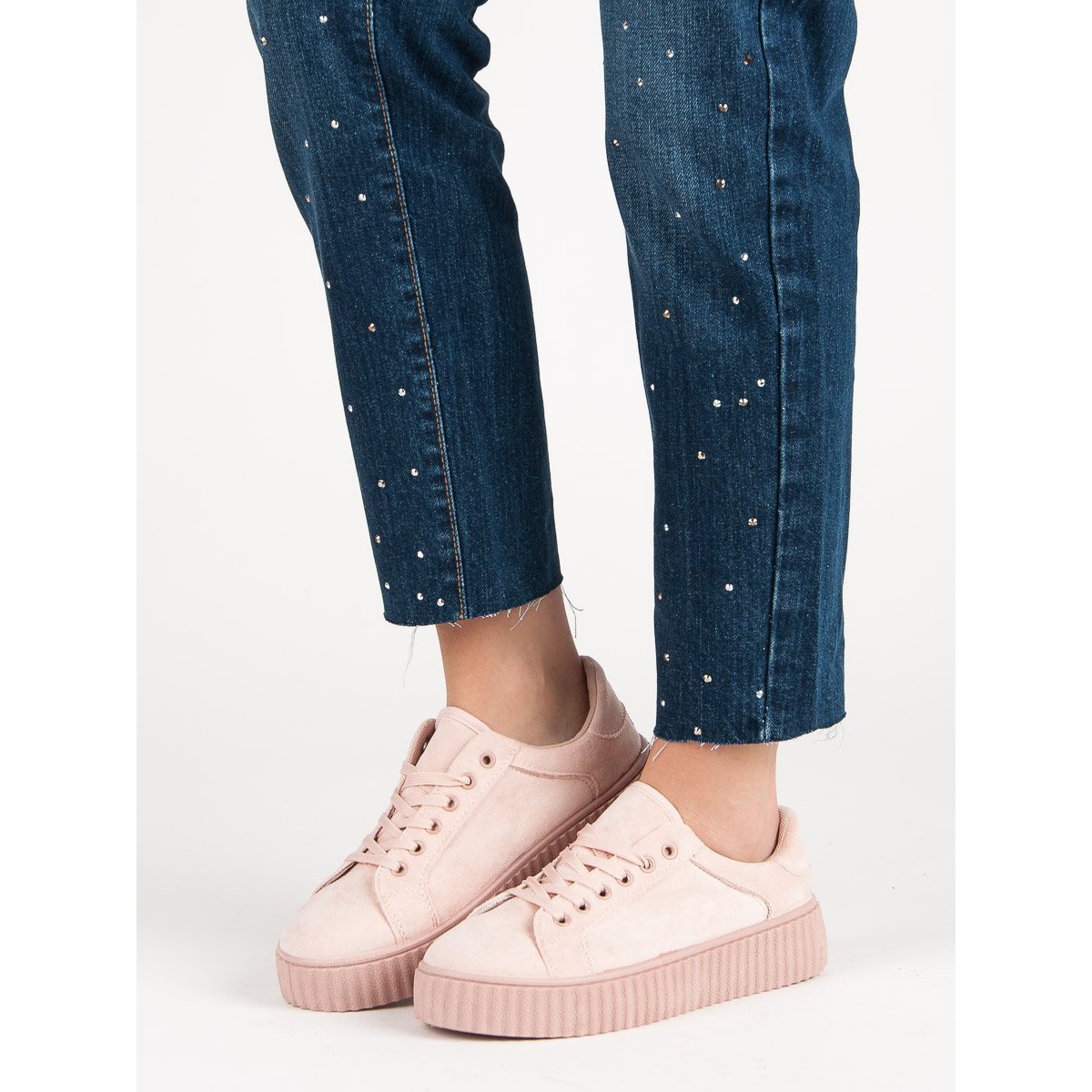 Nous vous présentons les Pink Suede Creepers de la marque Seastar - le choix parfait pour les femmes qui veulent se démarquer de la foule. Ces baskets uniques, d'un rose pastel délicat, respirent la féminité et le style, attirant l'attention de tous les passants.