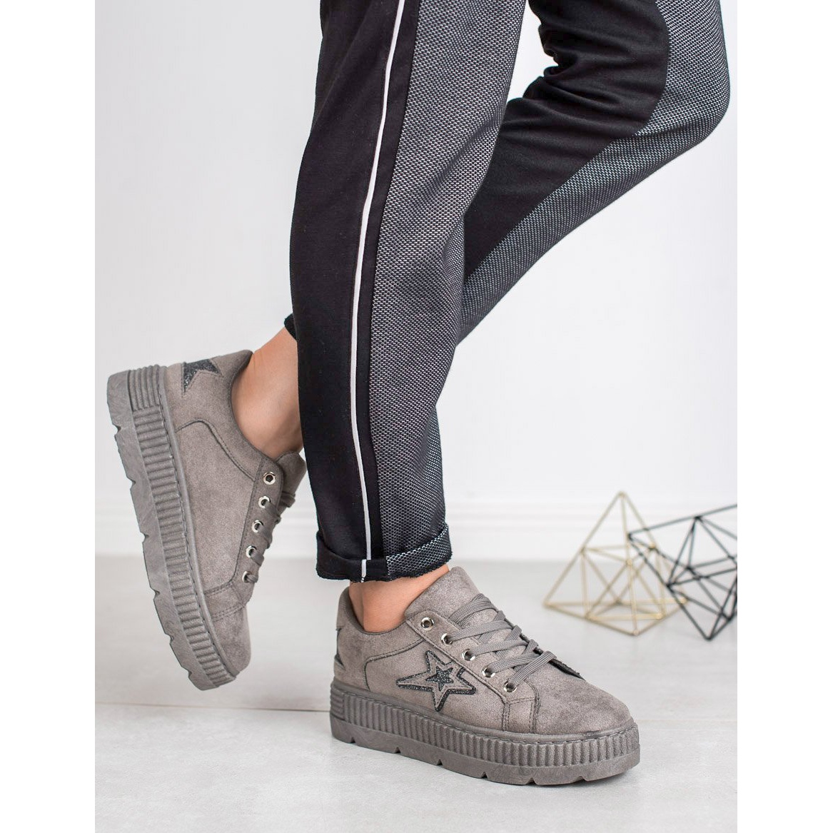 Les Creepers en daim SHELOVET en gris sont un choix parfait pour les femmes qui apprécient le style et le confort au quotidien. Ces chaussures de sport se caractérisent par une semelle épaisse et profilée en plastique, qui offre une excellente adhérence et un excellent confort de port.