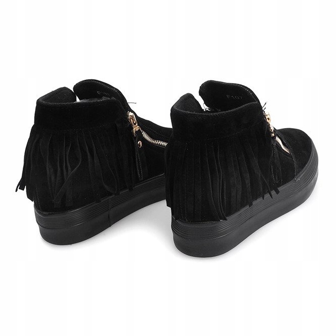 Les Creepers F107 se caractérisent par une hauteur de cale d'environ 6 cm, ce qui affine les jambes et vous offre un confort de marche. Grâce à leur structure légère, ces chaussures sont extrêmement confortables et parfaites pour les longues promenades. Le cuir suédé écologique leur donne un look élégant, et l'accent supplémentaire sous forme de franges les distingue des autres modèles.