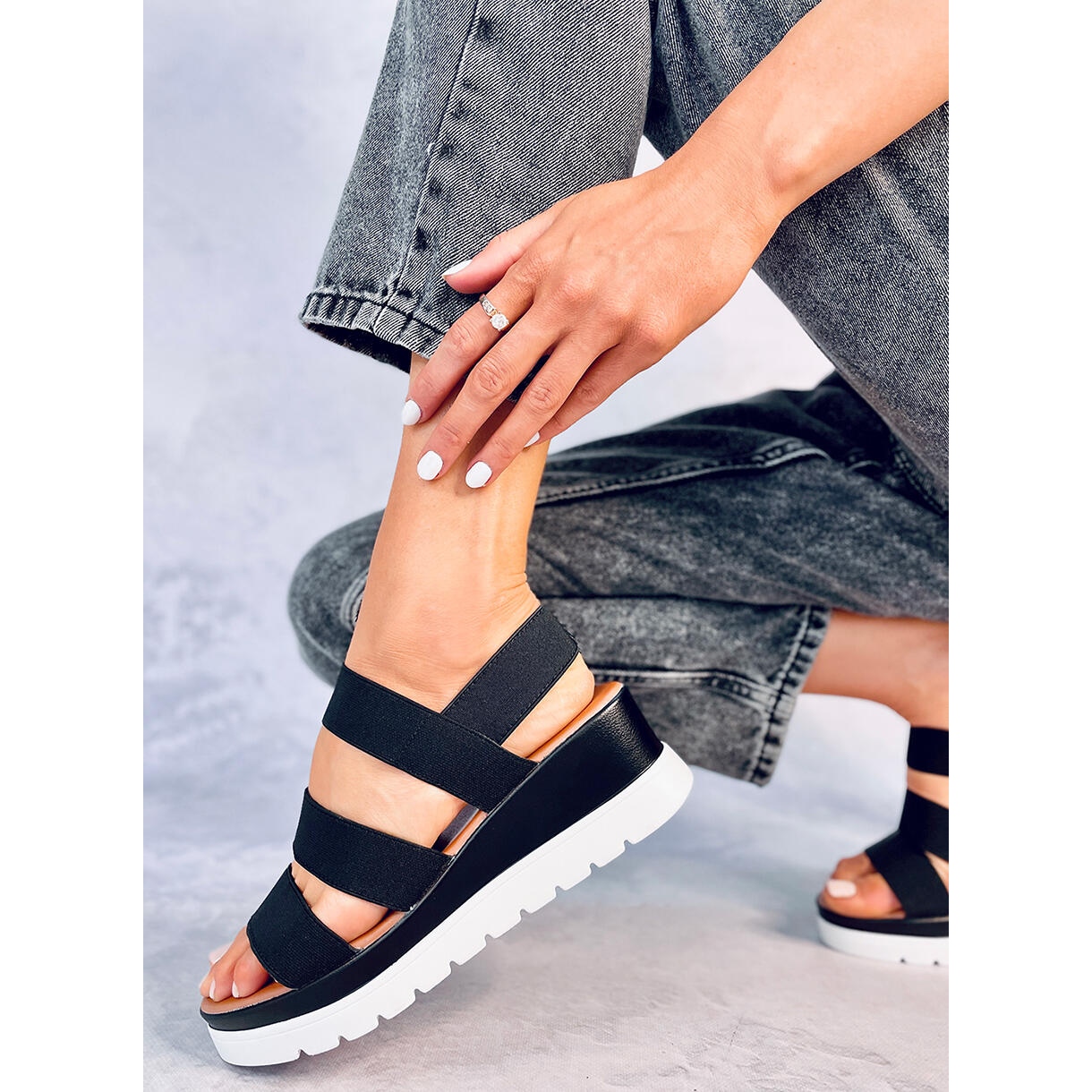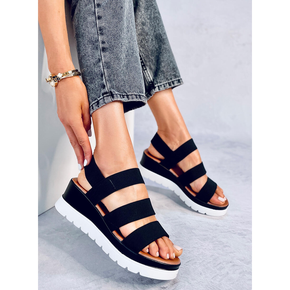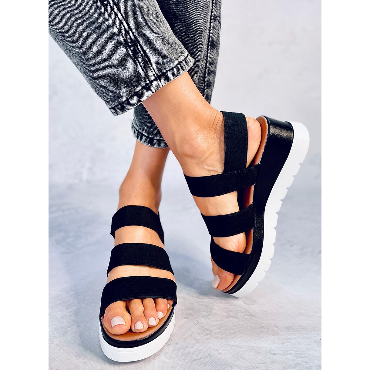 Découvrez le confort et le style avec les sandales compensées Cregger Black ! Ces sandales légères pour femmes sont le choix parfait pour les journées d'été, grâce à la hauteur de la cale de 6 cm, qui met parfaitement en valeur la silhouette et assure en même temps la stabilité pendant la marche. Les sangles élastiques au milieu du pied s'adaptent parfaitement à la jambe, vous permettant de bouger librement, et la plateforme tendance de 3 cm de haut garantit le confort à chaque pas.