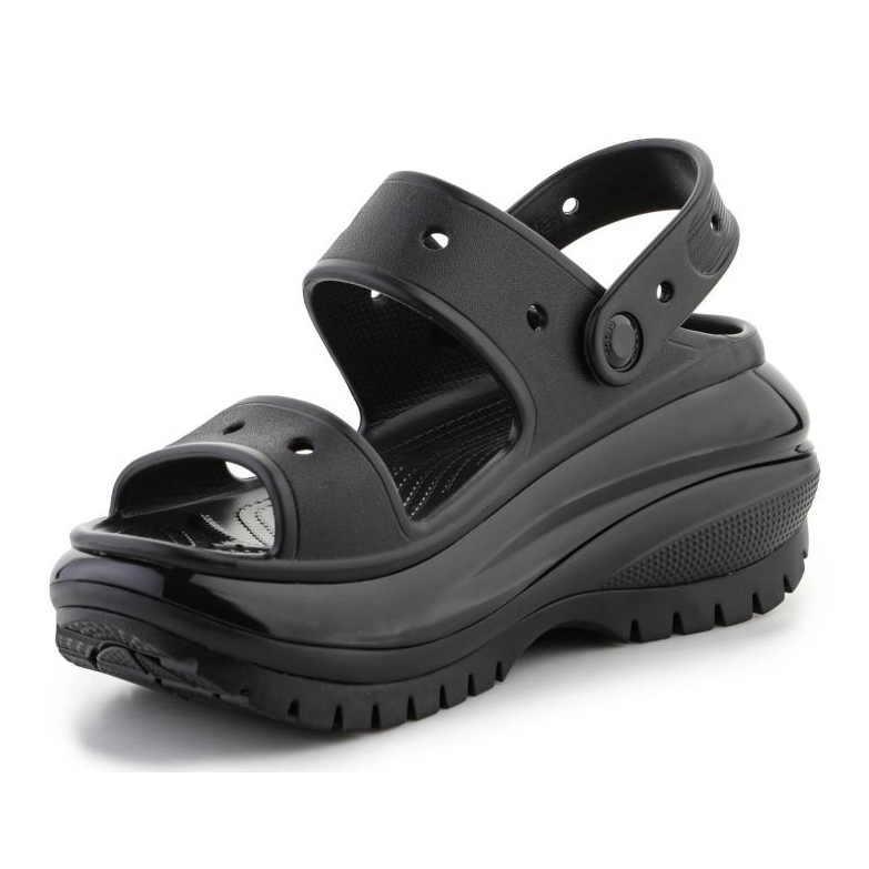 Grâce à la technologie d'amorti Mega Crush Crocs, chaque étape s'accompagne d'une douceur et d'un soutien agréables, ce qui en fait un choix extrêmement fonctionnel pour les jours d'été. La couleur noire universelle fait que ces sandales se mélangent parfaitement avec diverses stylisations, à la fois décontractées et plus élégantes.