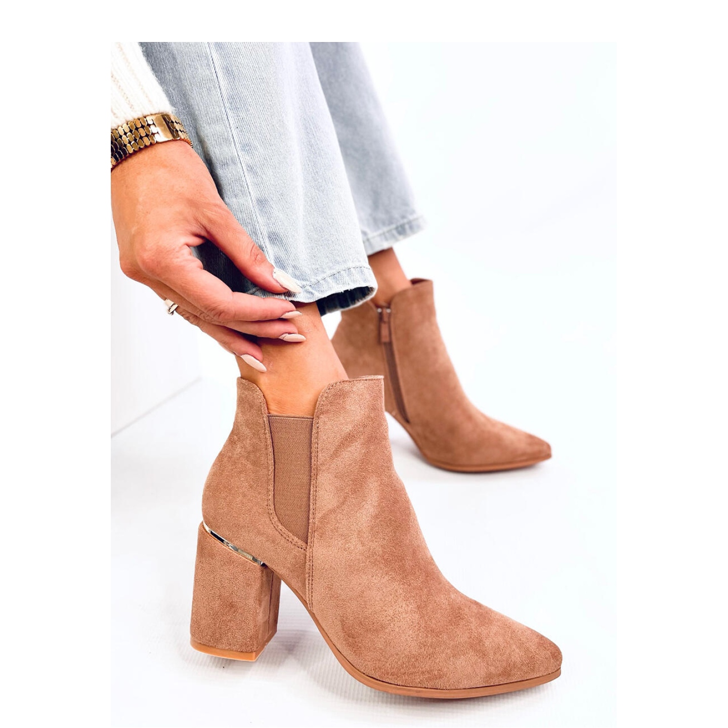 La hauteur du talon de 8,5 cm ajoute de l'élégance, tout en assurant la stabilité et le confort du port. Les bottes ont été conçues pour une mise en place facile - un insert flexible et une fermeture à glissière permettent une mise en place rapide et sans problème, grâce à laquelle vous obtiendrez même un look à la mode.