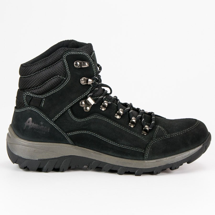 Les chaussures de trekking en cuir noir American Club sont des chaussures pratiques et élégantes pour les mois les plus froids - chaudes, stables et durables, parfaites pour un usage quotidien.
