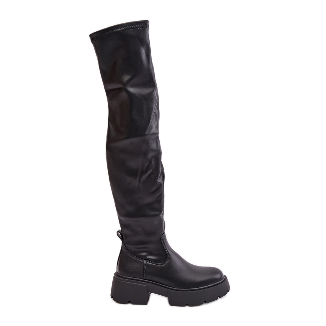 Détails: Cuissardes à plateforme et talon plat en éco-cuir, noir Loreviana