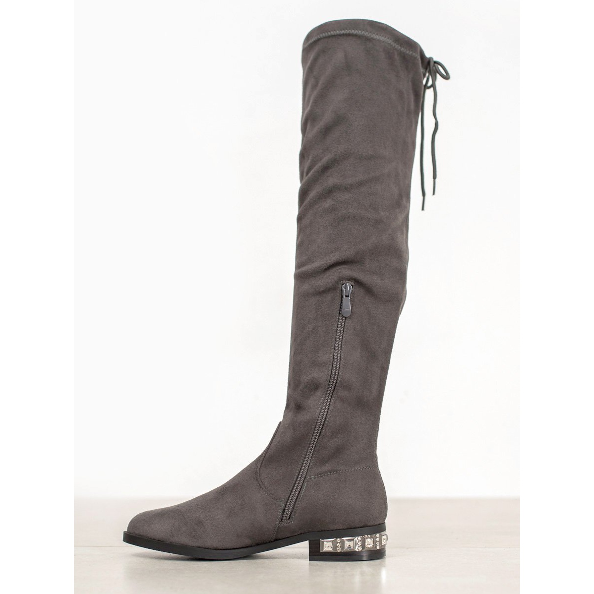 Bestelle Bestelle Cuissardes à talon décoratif gris