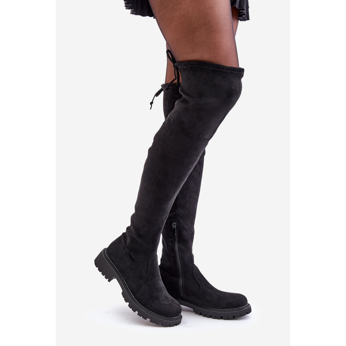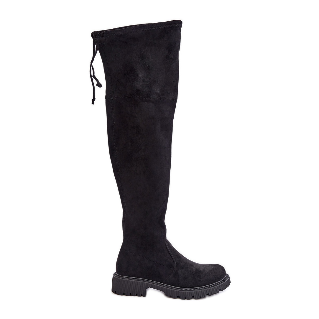Détails: Cuissardes à talon plat en éco-daim, Noir Arkelia