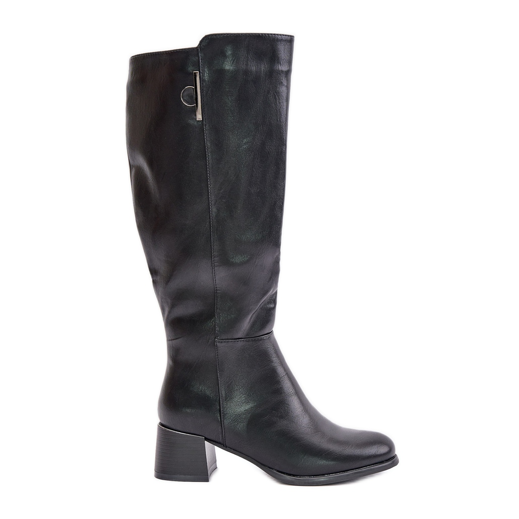 Les bottes à talon de haut niveau sont un incontournable dans votre garde-robe pour la saison automne / hiver. Le modèle Izanae, disponible dans une couleur noire élégante, se distingue non seulement par le style, mais aussi avec des fonctionnalités. La partie supérieure devant le genou allonge optiquement les jambes, et un talon stable d'un cloître de 5,5 cm de haut assure le confort pendant le port de tous les jours.