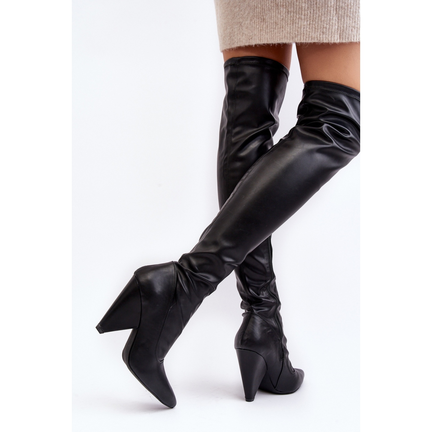 Les cuissardes à talons hauts sont le choix parfait pour les femmes qui souhaitent ajouter un peu d'élégance et de style à leur garde-robe. Fabriqués en éco-cuir de haute qualité, ils offrent non seulement confort, mais aussi durabilité et esthétique. Les bottes noires attirent l'attention par leur style mousquetaire unique et leur bout pointu, qui leur confère un caractère chic.
