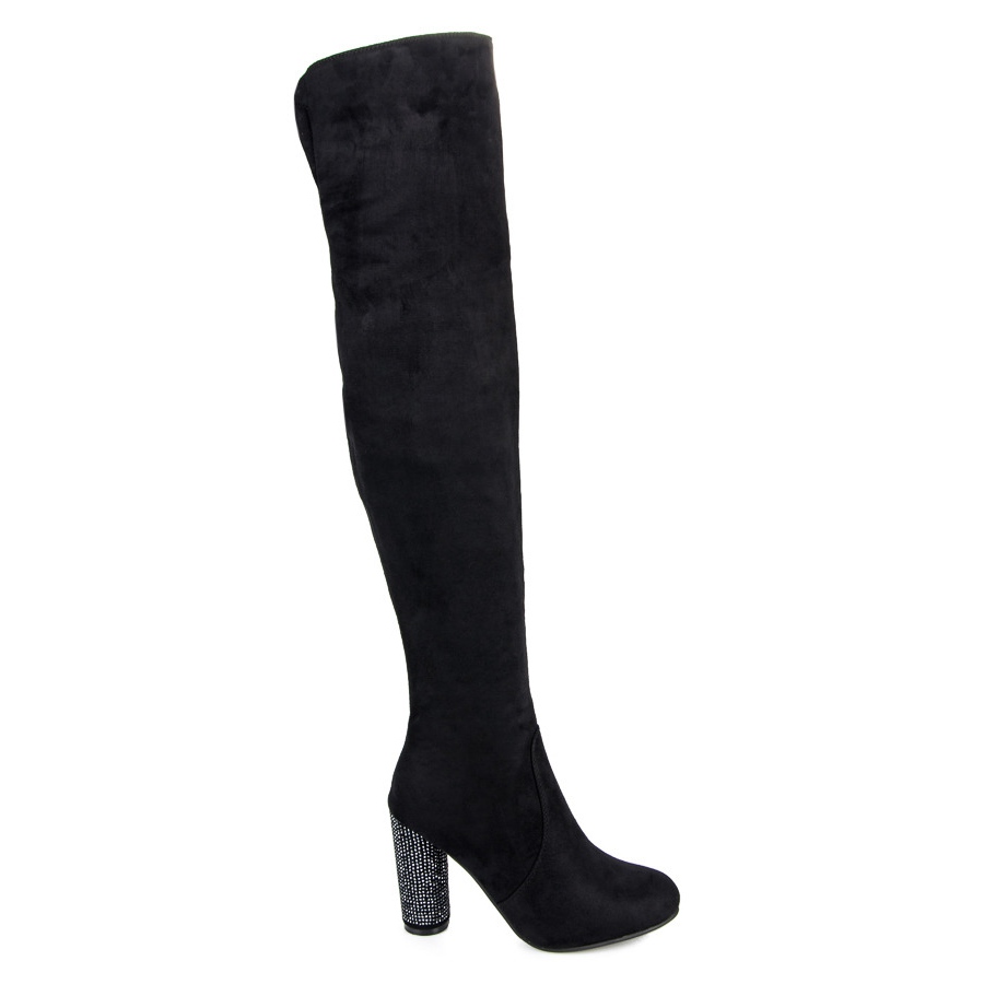 Grâce à un talon haut de 10,5 cm, orné de subtils cristaux, ces mousquetaires se démarquent par leur aspect original tout en assurant un confort de port. La coupe classique, avec un talon raidi et une tige bâtie, les rend parfaitement ajustées à la silhouette, et leur hauteur au-dessus du genou ajoute de l'élégance.