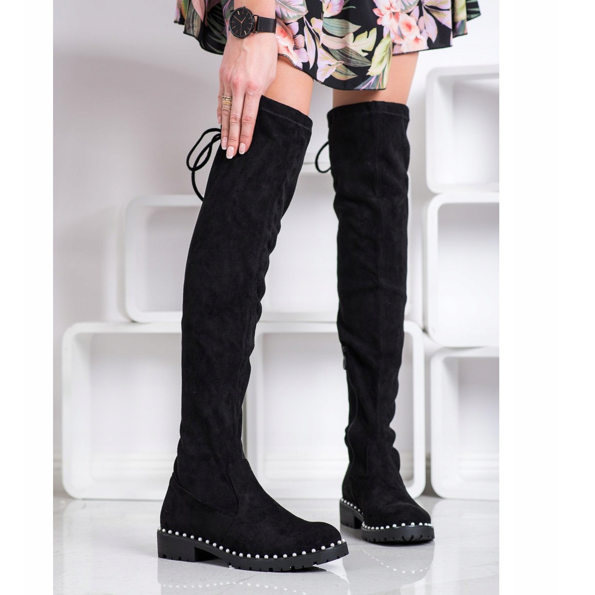 Détails: SHELOVET Cuissardes avec perles le noir