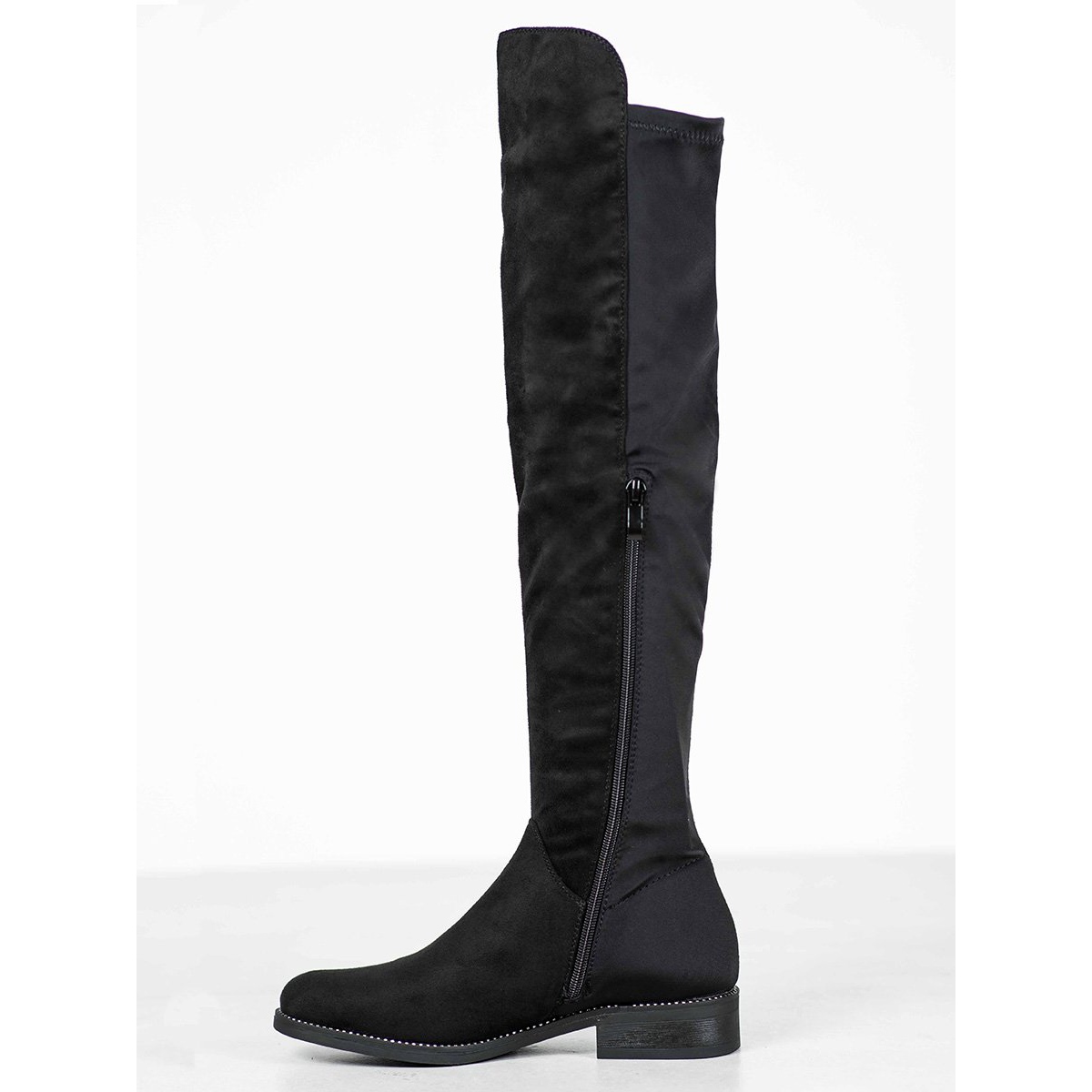 Le fermoir souple intégré et le bout rond assurent un confort de port même par temps froid, grâce à l'isolation intérieure. La tige haute, arrivant au-dessus du genou, souligne la silhouette et ajoute de la féminité, et le talon plat de 3 cm rend les chaussures stables et pratiques.