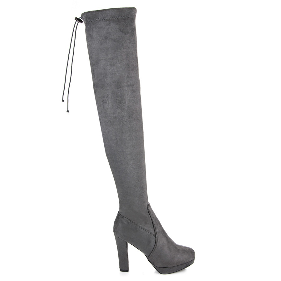 Découvrez l'élégance et le style avec les mousquetaires Vices dans une teinte gris foncé. Ces bottes uniques en cuir suédé écologique sont le choix parfait qui ajoutera de l'élégance à n'importe quel style. La tige haute, arrivant au-dessus du genou, souligne les jambes et les affine, et la coupe classique permet à ces chaussures de s'adapter aussi bien aux tenues de tous les jours que de soirée.