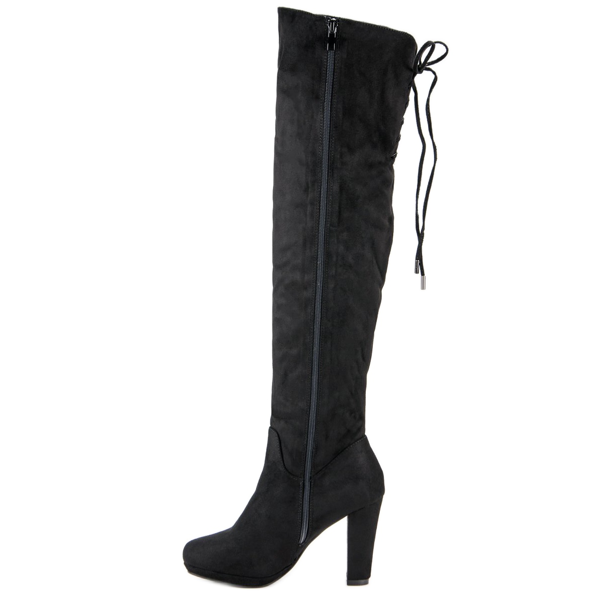 Détails: Cuissardes en daim sur le poteau le noir