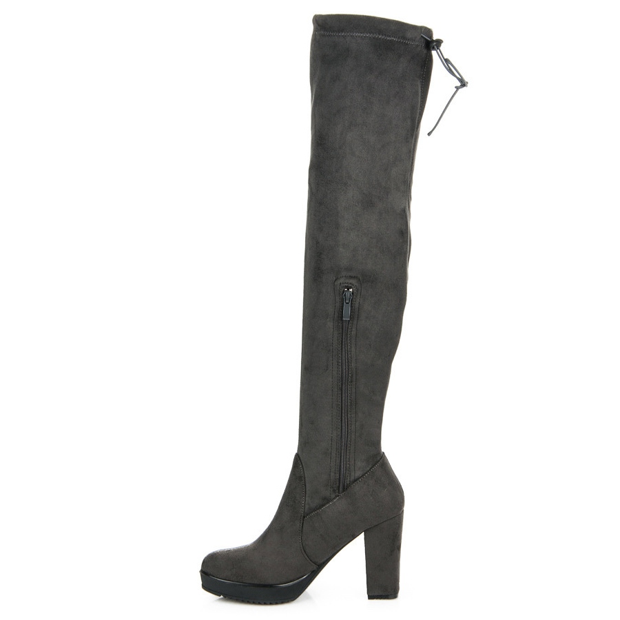 Les mousquetaires Grey Vices sont le choix parfait pour les femmes qui apprécient le style et le confort. Fabriquées en daim écologique de haute qualité, ces chaussures tendance arrivent au-dessus du genou, ce qui protège efficacement vos jambes du froid tout en leur donnant un look élégant. Leur isolation vous permet de bénéficier d'un confort optimal même par temps glacial.