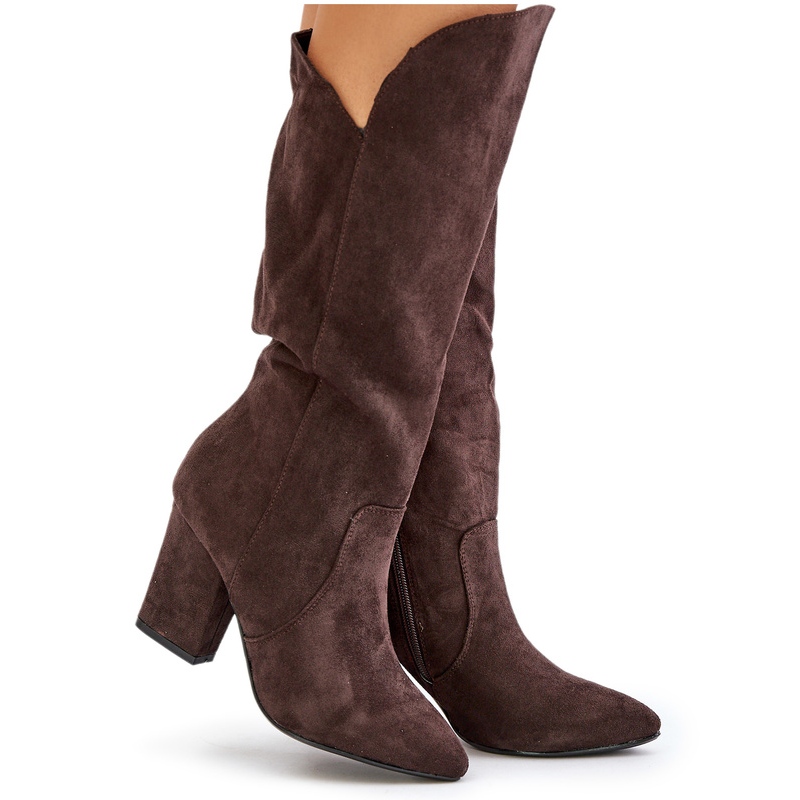 Cherchez-vous les chaussures parfaites pour des jours plus frais? Des bottes devant le genou sur le poteau d'éco en daim en couleur brune de Clorir sont un excellent choix! Ces bottes élégantes se réjouissent non seulement de leur coupe classique, mais garantissent également le confort de porter grâce à la hauteur du talon de 9 cm et la moitié du veau.