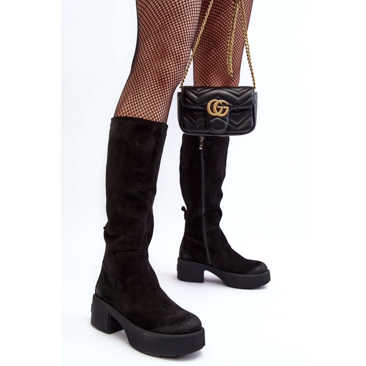 Les cuissardes en daim Lemar pour femmes noires Malayah sont des chaussures Lemar élégantes et stylées, parfaites pour les femmes qui apprécient la mode et le confort. Fabriqué en Pologne à partir de cuir suédé naturel de haute qualité, qui garantit durabilité et résistance aux dommages. Ils se caractérisent par une coupe classique qui s'adapte parfaitement à différents styles.