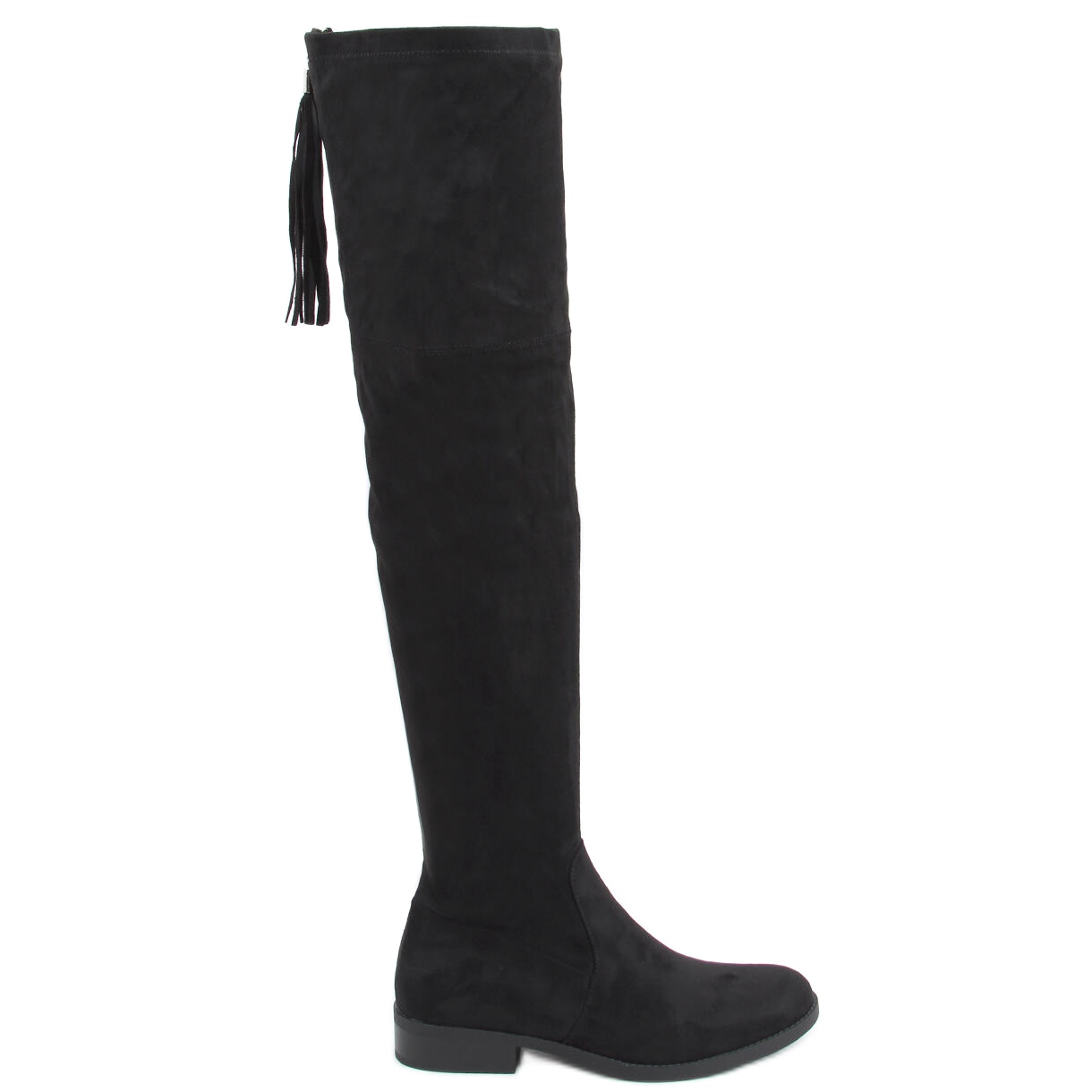 Nous vous présentons les cuissardes en daim Nana pour femmes dans une élégante couleur noire, qui attireront certainement l'attention par leur style à la mode. Ces bottes longues se distinguent par un bout arrondi et un détail accrocheur sous forme de franges, qui leur confèrent un charme unique. La semelle plate assure un confort maximal au porté, ce qui en fait le choix parfait pour un usage quotidien.
