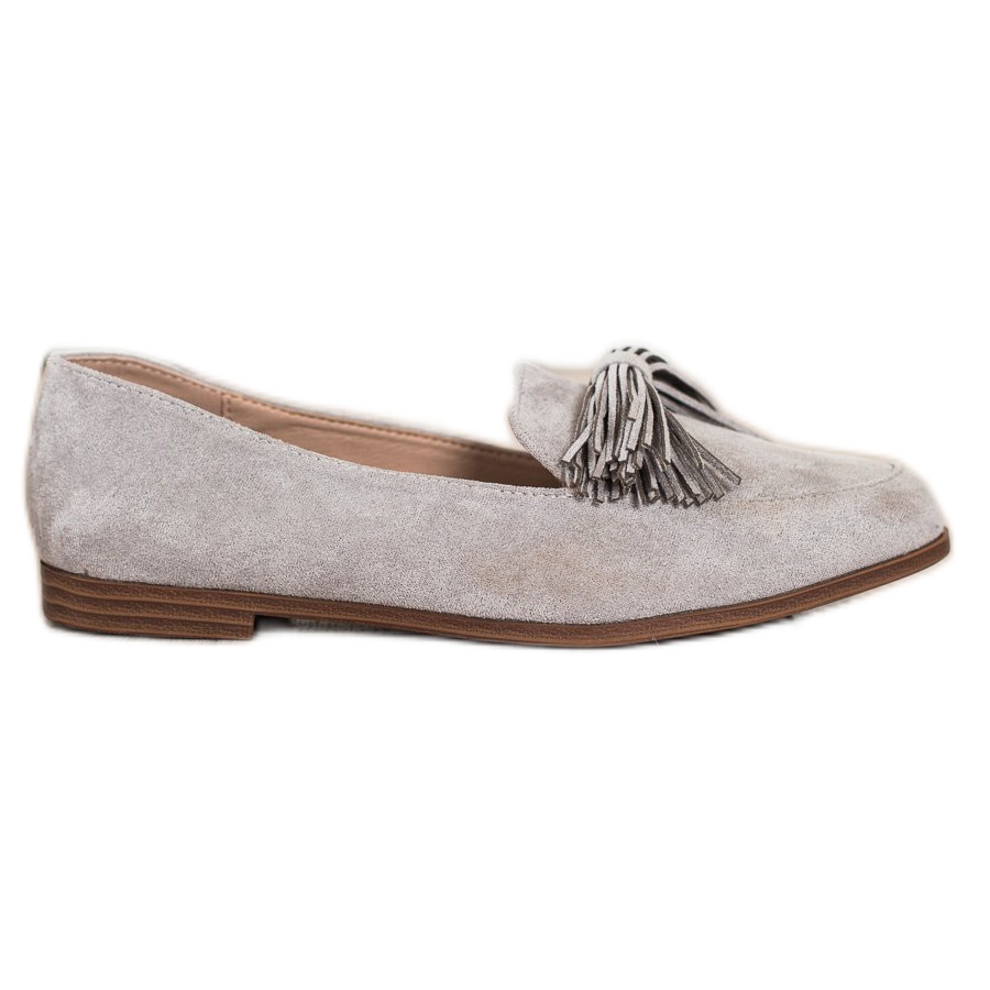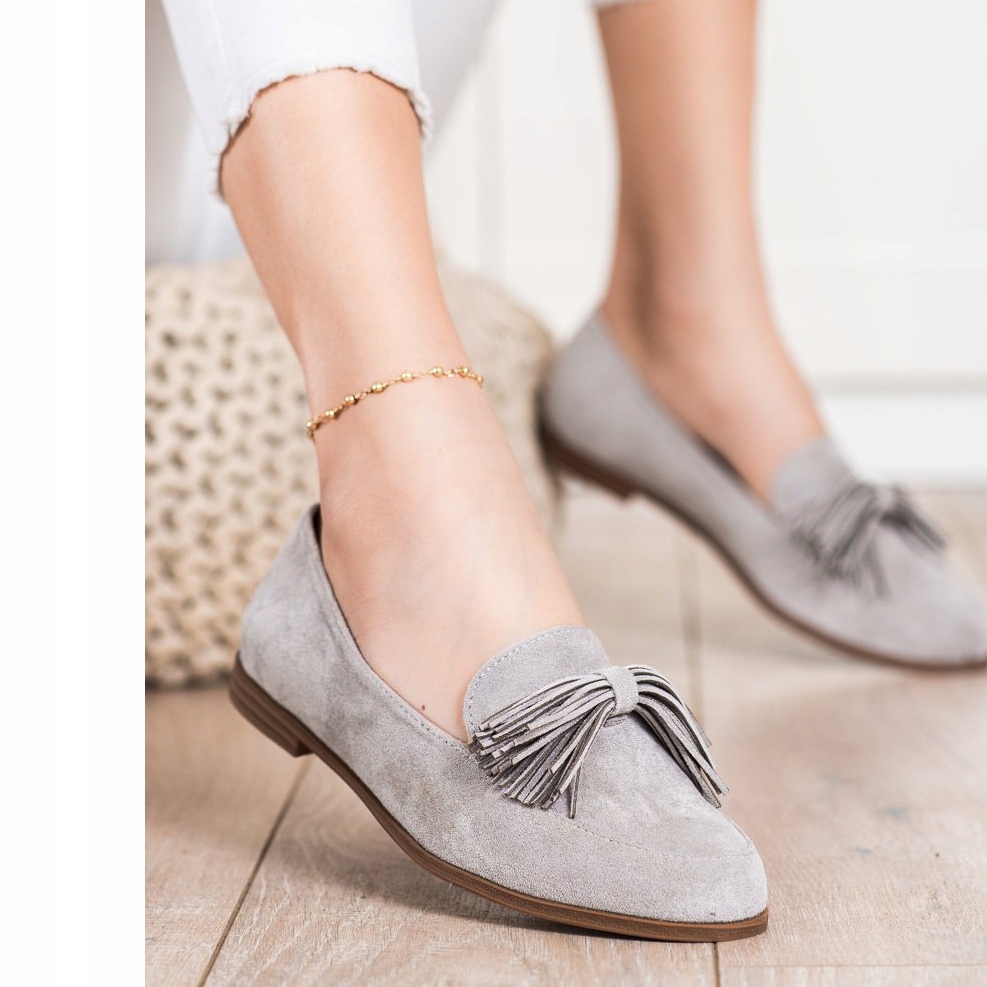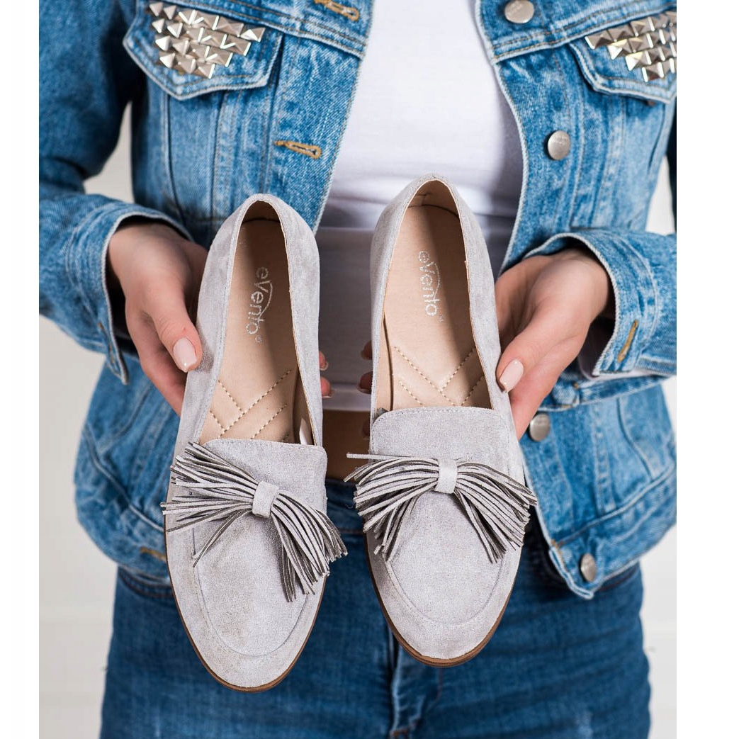 Les franges sont un détail important qui ajoute de l'originalité à ces chaussures, et le bout rond favorise le confort sans serrer les orteils. Leur couleur grise universelle les rend faciles à combiner avec d'autres vêtements, et leur talon plat (1,5 cm de hauteur) les rend adaptées aussi bien à un usage quotidien qu'à des occasions plus formelles.