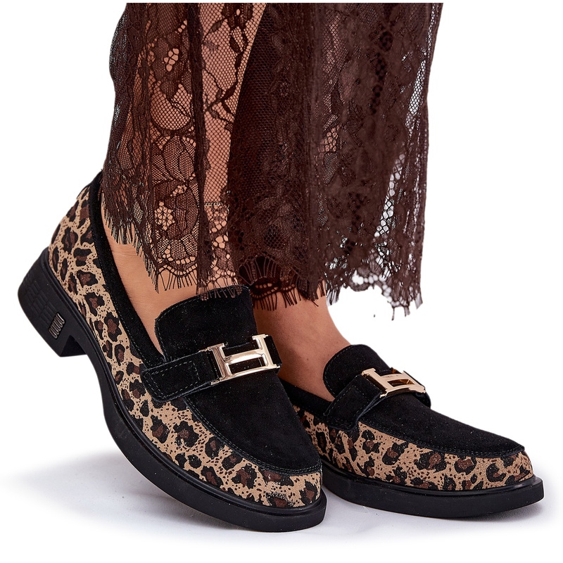 Détails: Daim mocassins women's Vinceza 66791 Black Leopard Print le noir