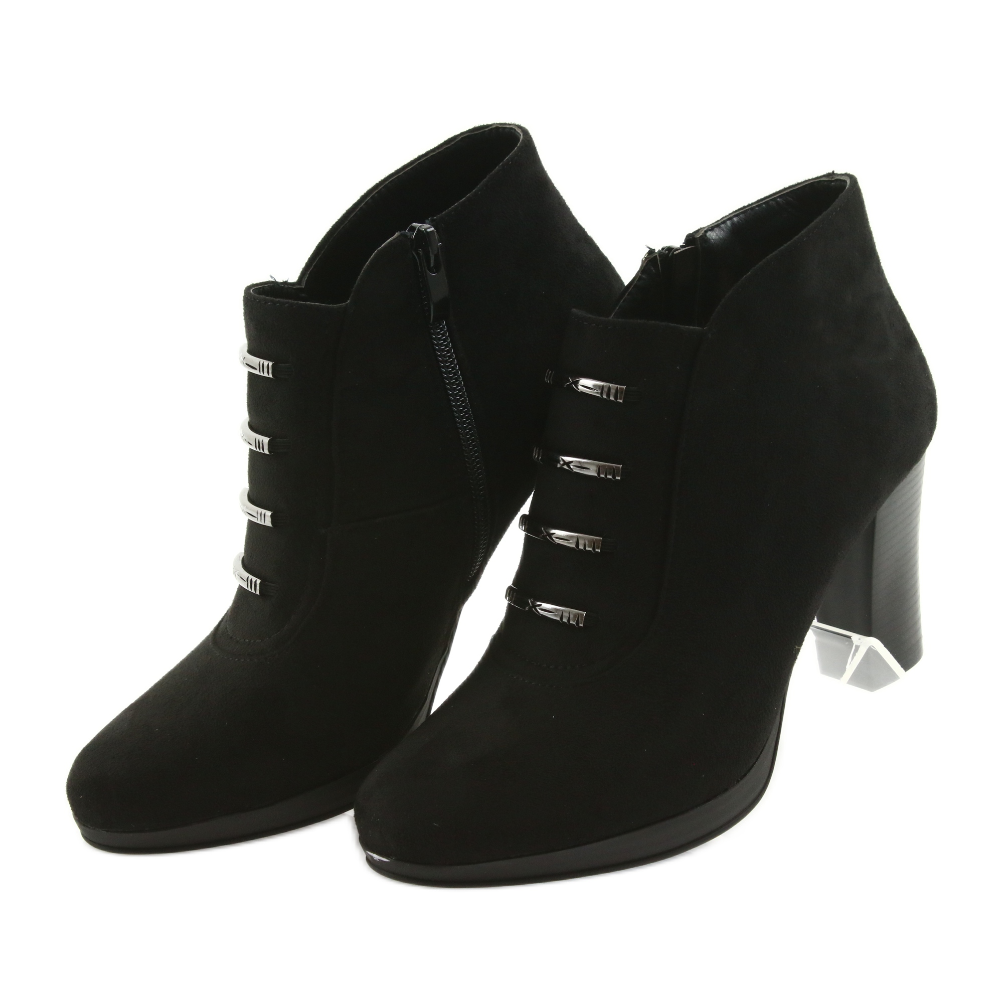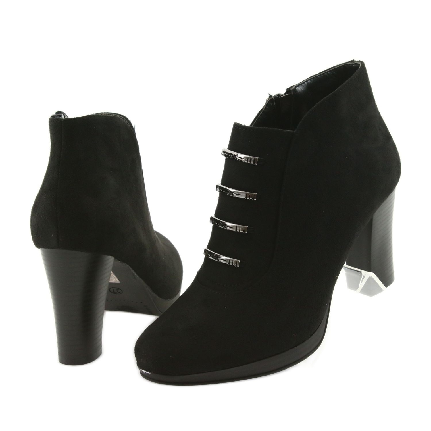 Les bottines à talons hauts M.Daszyński sont la combinaison parfaite de style et de confort que chaque femme devrait avoir dans sa garde-robe. Fabriquées en cuir éco-daim de haute qualité, ces bottines noires sont non seulement élégantes, mais aussi agréables à porter. Grâce à l'isolation, ils sont parfaits pour les journées plus froides et leur hauteur de cheville offre un soutien et une protection supplémentaires.