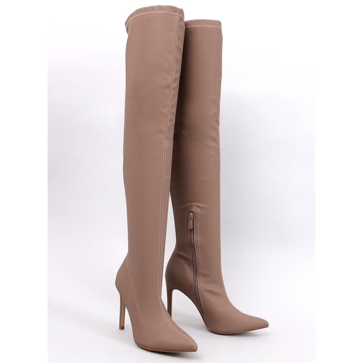 Mousquetaires sur Dererica Khaki (dk.beige) - sensuel, élégant et extrêmement féminin. Un modèle avec une coupe mince avec un délicat Spitz et une épingle de 10 cm allimera vos jambes et ajoutera de la confiance à chaque occasion. La hauteur haute atteignant le genou crée un aspect efficace et à la mode, et le château sur le côté facilite la mise en place rapidement. Fabriqué en cuir écologique de grain - style sans compromis.