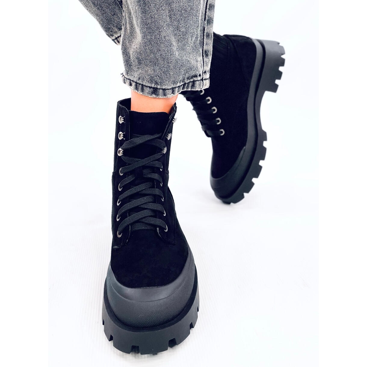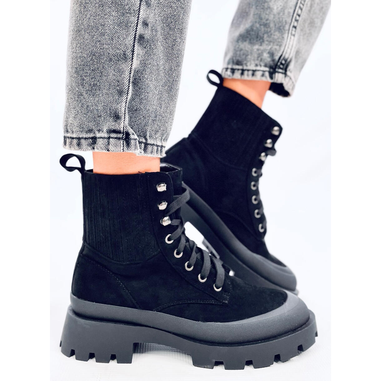 Fabriquées en daim écologique durable, ces bottines allient esthétique et respect de l'environnement. Leur surface lisse dans une couleur noire classique leur permet de s'adapter à de nombreux styles, à la fois décontractés et plus élégants. Grâce à leur nez rond, ils offrent un confort de port supplémentaire, ce qui les rend idéaux pour les longues promenades ou les sorties quotidiennes.
