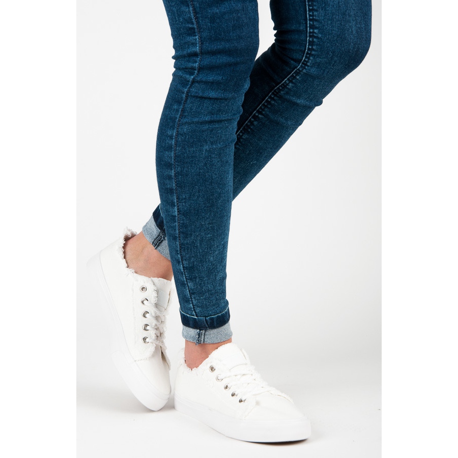 Fabriquées dans un tissu de haute qualité, les baskets blanches assurent un confort tout au long de la journée. Leur bout rond et leur talon souple intégré garantissent un confort optimal, tandis que la fermeture à lacets permet un ajustement parfait au pied. Grâce à la semelle en caoutchouc avec bande de roulement, chaque goutte de pluie ou toute légère irrégularité du terrain ne constitue pas un obstacle et vous pouvez profiter d'un pas en toute confiance.