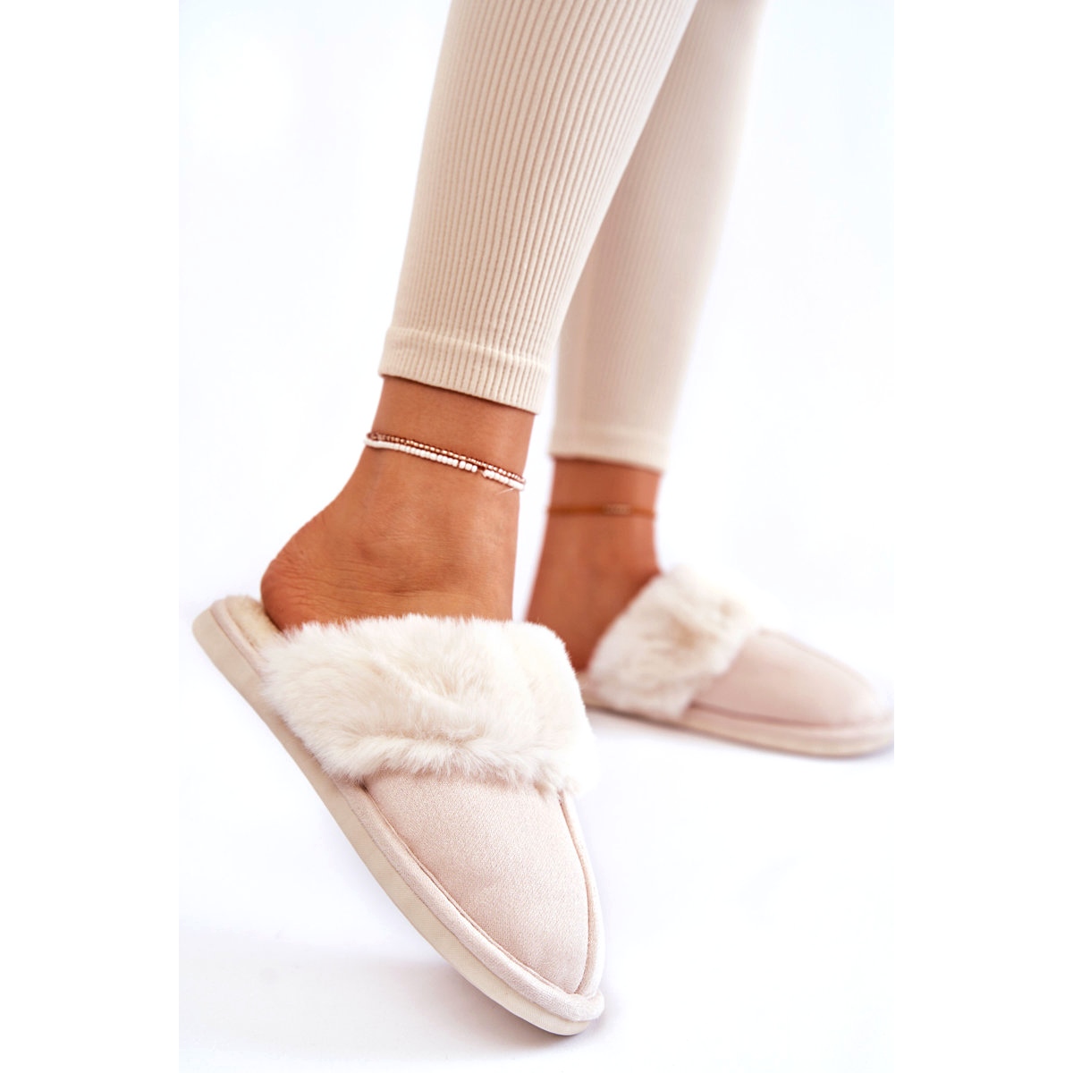 Inna marka Des pantoufles lisses des femmes avec une fourrure beige brillante