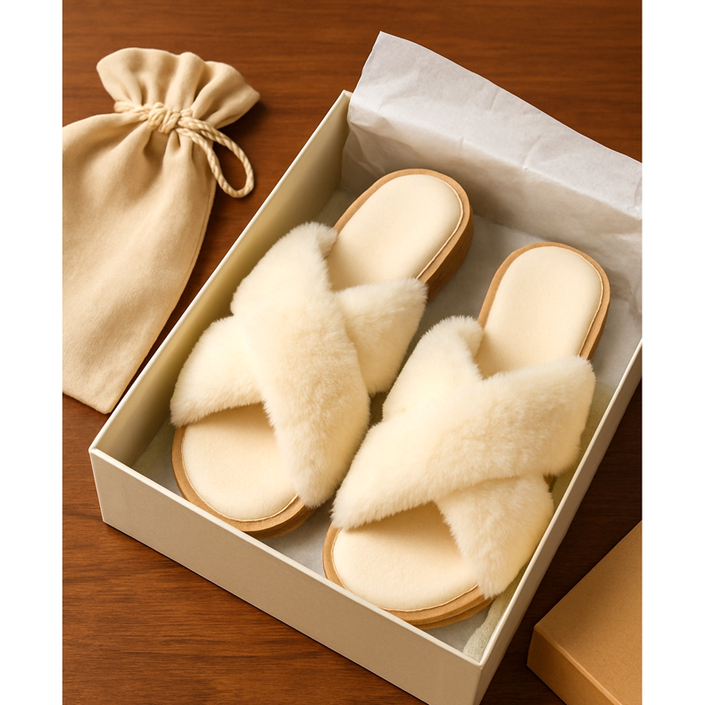 Offrir des pantoufles de luxe à quelqu’un, c’est bien plus que simplement offrir un article. C'est le cadeau d'un moment de détente, de confort et de chaleur. C'est un signal : « Je me soucie de votre repos. Combinés avec un pyjama en soie, une bougie parfumée et un bon livre, ils créent le coffret cadeau parfait pour une amie, une mère ou une sœur occupée. C'est un cadeau qui dit "arrêtez-vous et détendez-vous".
