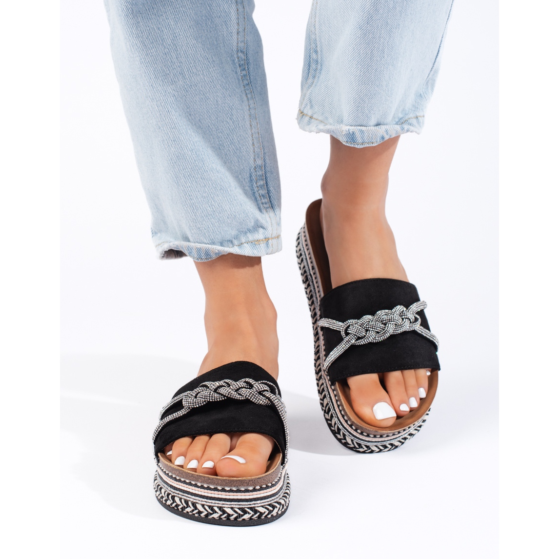 De plus, la semelle intérieure en imitation daim rend les pieds confortables et les strass ajoutent un éclat unique aux tongs. La couleur noire classique leur permet de s'adapter à de nombreux styles, du quotidien aux plus élégants.