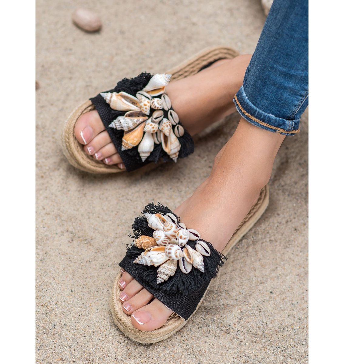 Détails: Seastar Des tongs à la mode avec des coquillages noir