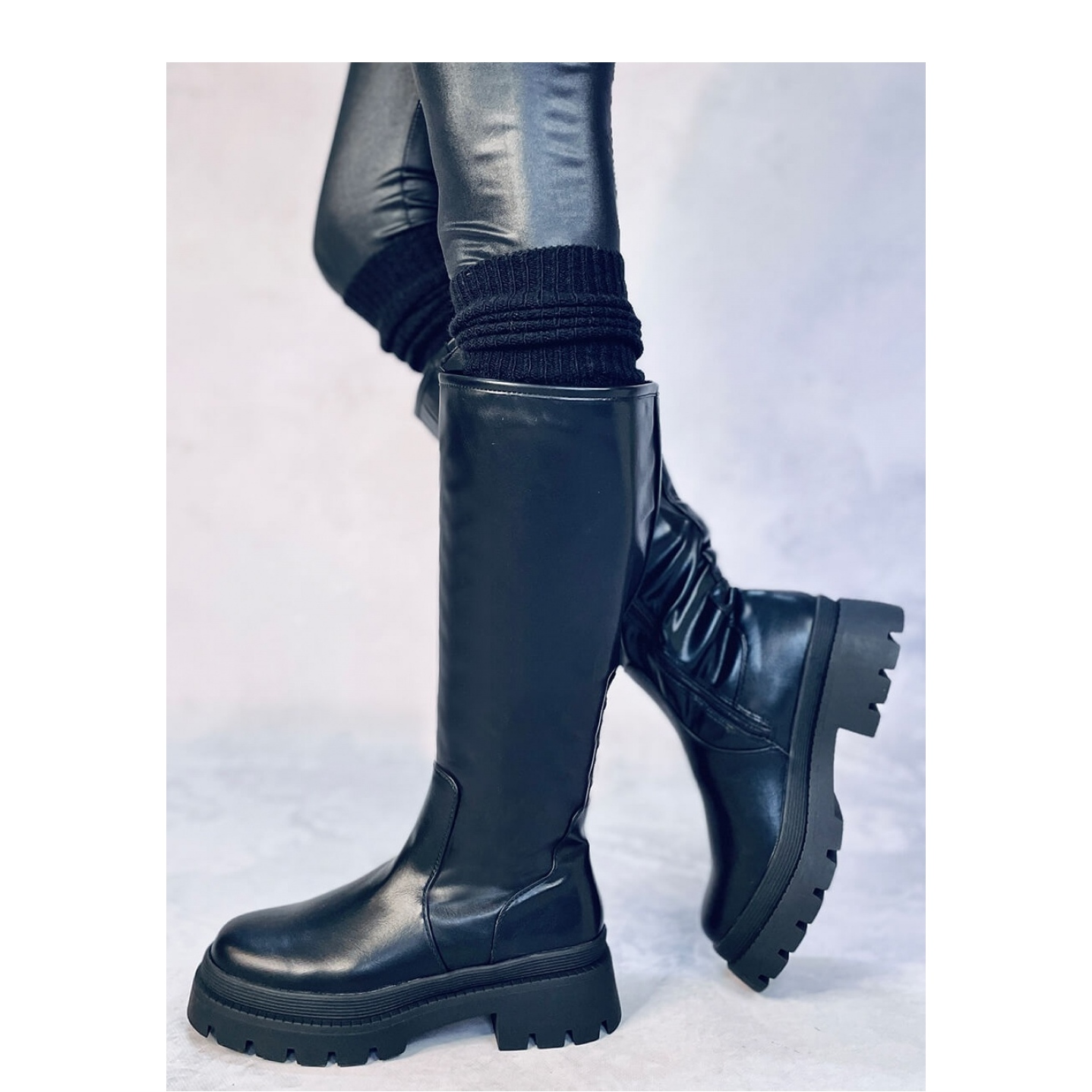 Bottes pleine fleur pour femmes - bottes. Leur design minimaliste est mis en valeur par la semelle épaisse la plus tendance. Grâce à eux, vous attirerez l'attention et prouverez que vous connaissez les tendances ! Le confort d'enfilage est assuré par une fermeture éclair sur le côté de la tige. Ils sont fabriqués en cuir écologique, avec doublure en mousse.